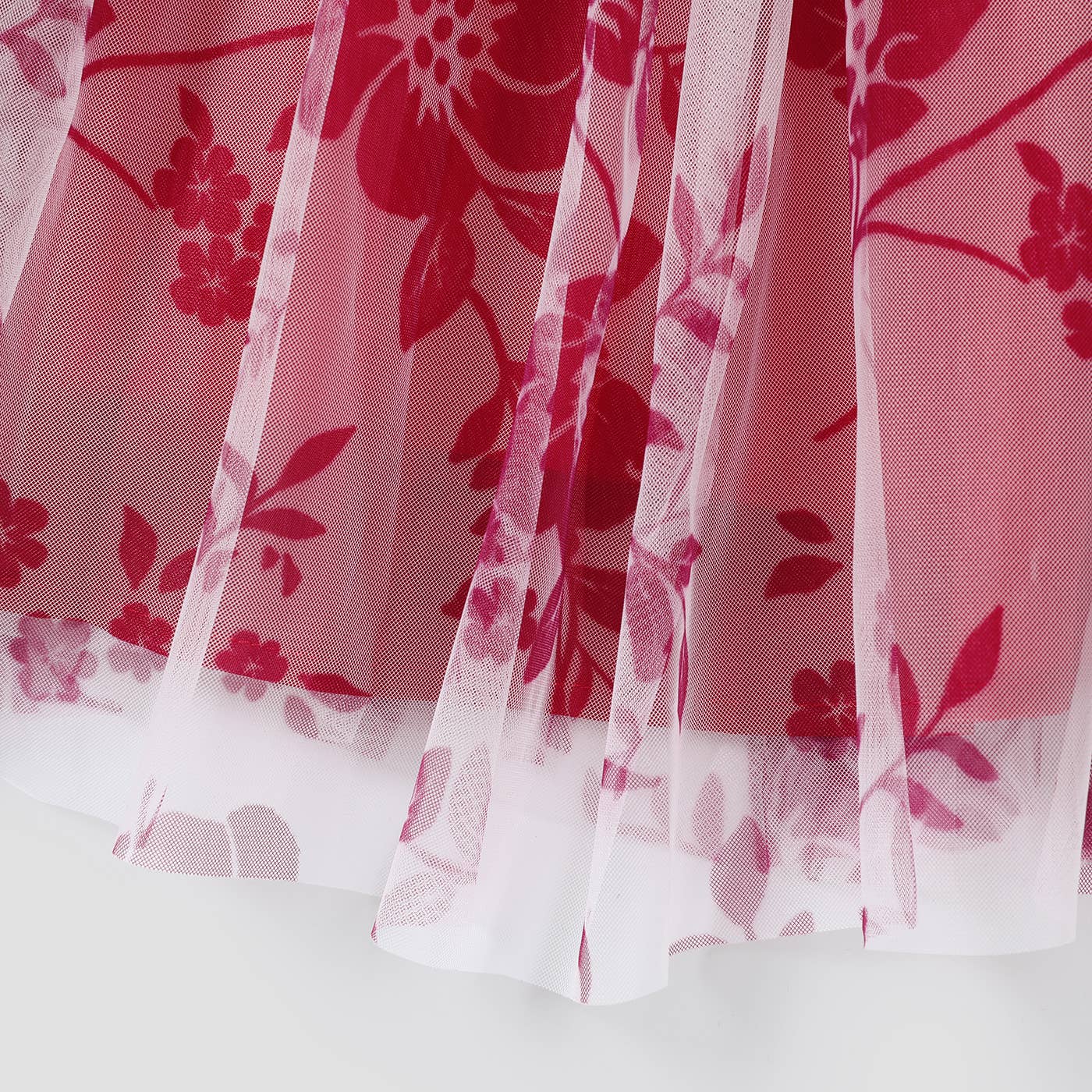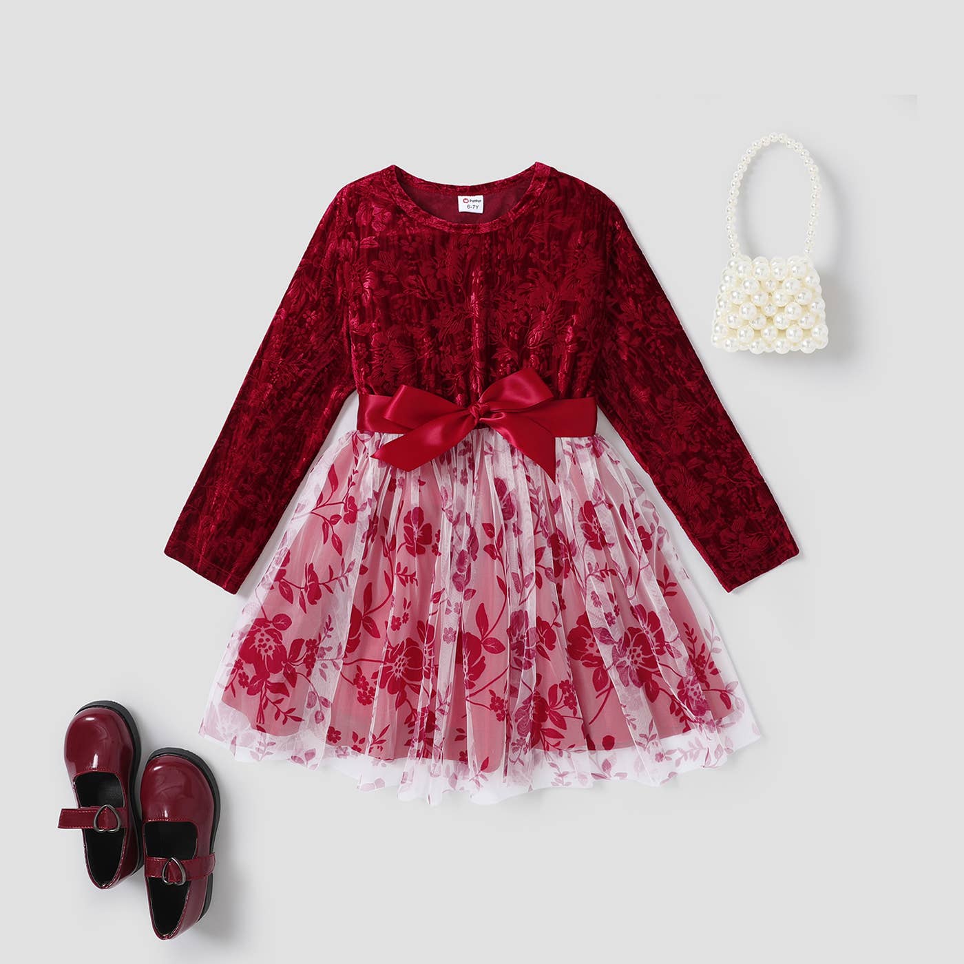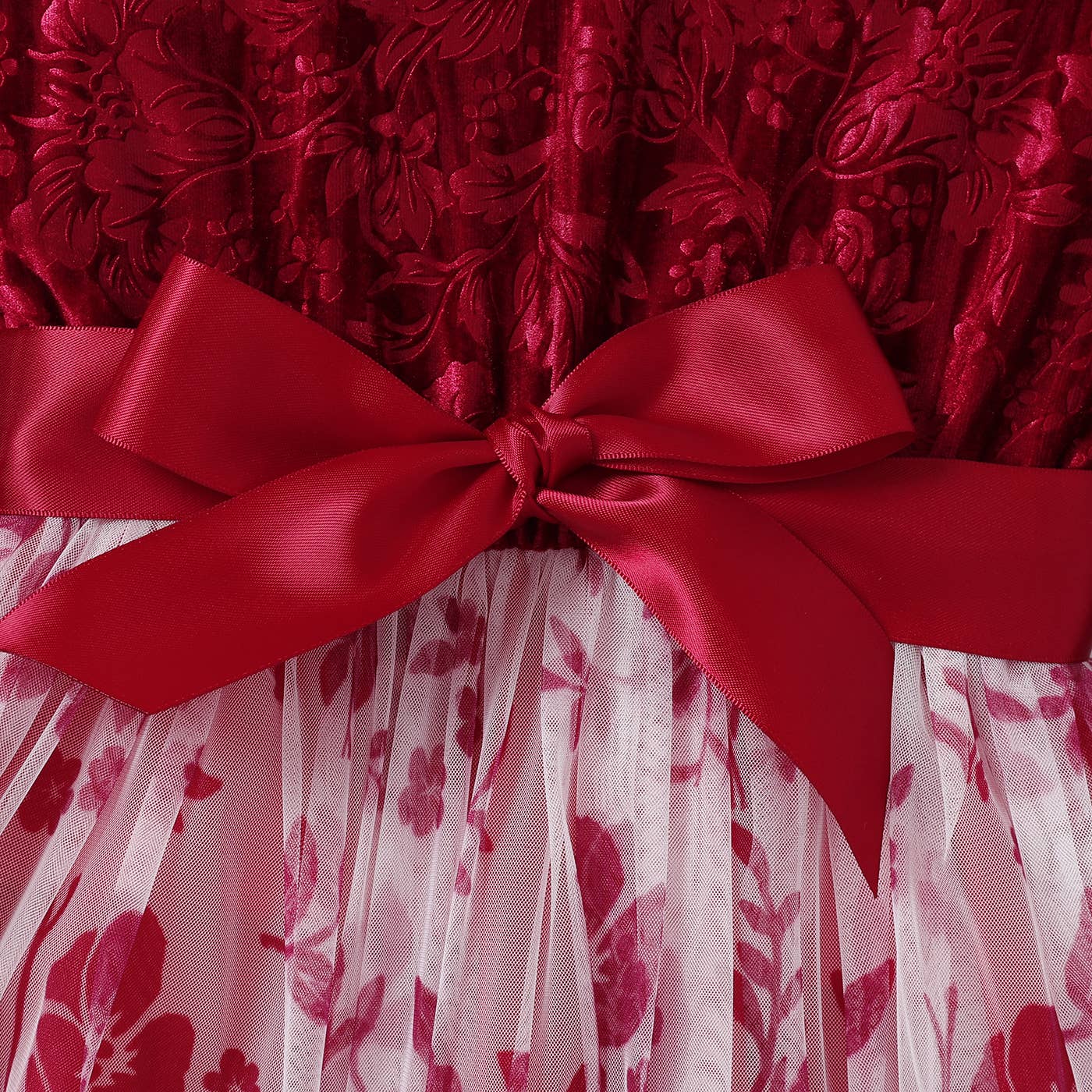 This red dress is perfect for any special occasion, making your little fashionista ready to shine. Made from soft and comfortable polyester and spandex and featuring a velvet jacquard patchwork mesh, it adds a touch of elegance to festive gatherings. And for easy care, it's machine washable and tumble dry low.