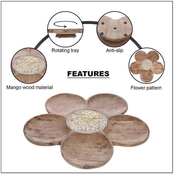 This hand-carved, hand-painted lazy susan tray is expertly crafted and built to last. With its wooden construction and ability to rotate, it provides convenience and functionality to any dining experience. Perfect for entertaining or everyday use, this tray will elevate your serving game.