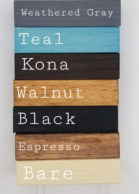 Each piece of art is created to order. No two are alike which makes it uniquely yours. We paint or stain the frame to the color of your choice. We apply 2-3 coats depending on how the wood absorbs the stain. Then apply a finishing bees wax paste for protection and antique look. The saying is created with heat transfer vinyl to ensure it last many years to come. We add a sawtooth hanger on the back. We can customize frame size and/or color.