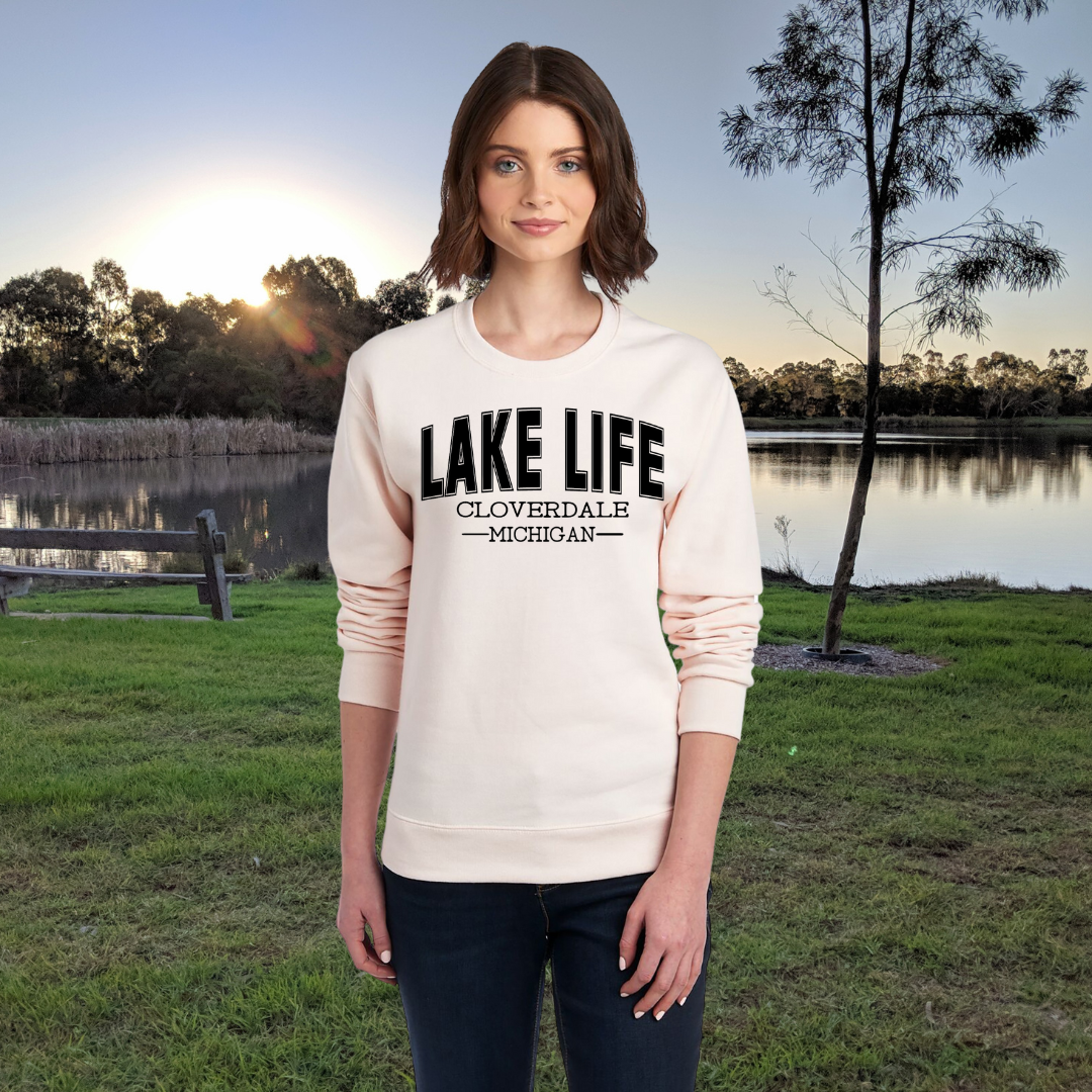 Elevate your wardrobe with our Cloverdale, Michigan Crewneck Sweatshirt. Made of 50% cotton and 50% polyester, this NuBlend® sweatshirt offers unparalleled comfort and durability. Pre-shrunk and pilling-resistant, it features a bold "Lake Life" print and "Cloverdale, Michigan" underneath, making it perfect for those who love the lake life.