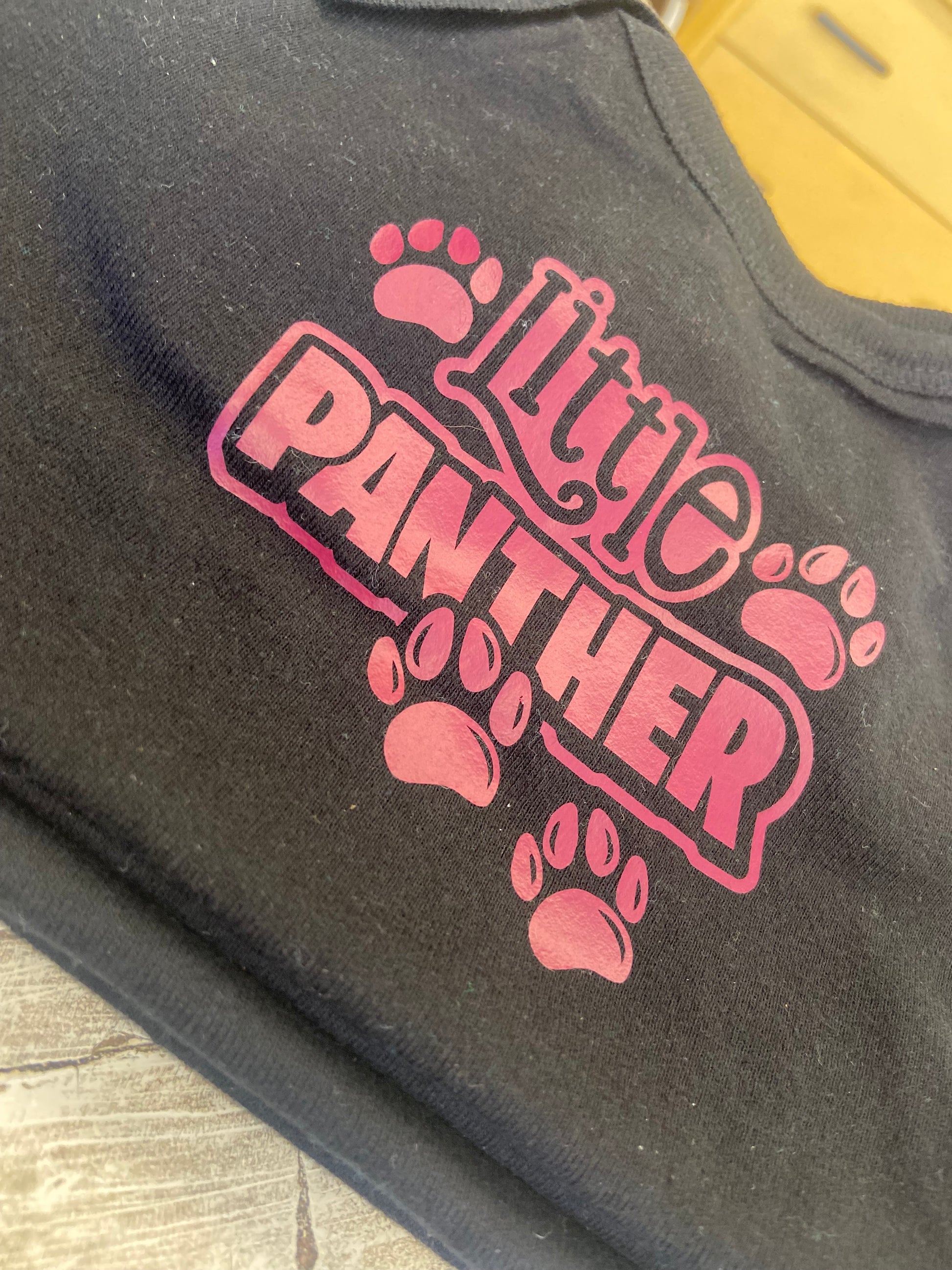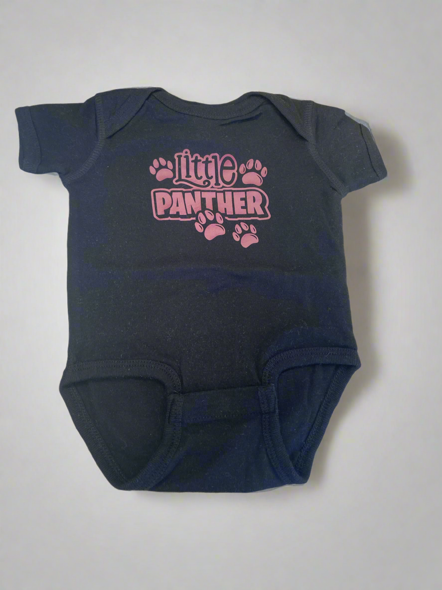 Wrap your little one in soft Panther pride with our Little Panther Onesie. Featuring the words "little Panther" surrounded by adorable paws, this onesie is perfect for showing off your team spirit. Made for comfort and cuteness, it's a must-have for any young fan.