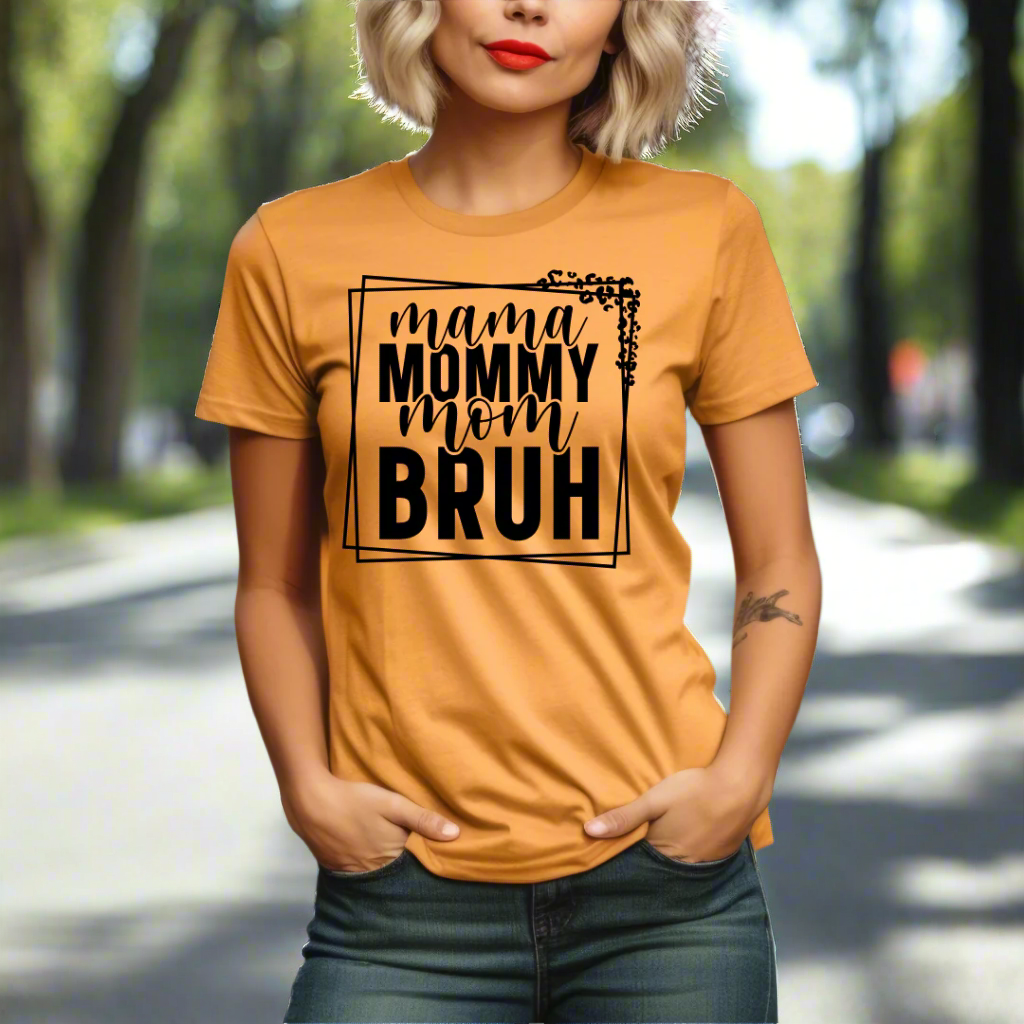 Embrace the stages of motherhood with our Bella + Canvas Unisex T-Shirt featuring a playful graphic that reads Mama, Mommy, Mom, Bruh. Perfect for any mom who doesn't take themselves too seriously and embraces the humor of parenthood.