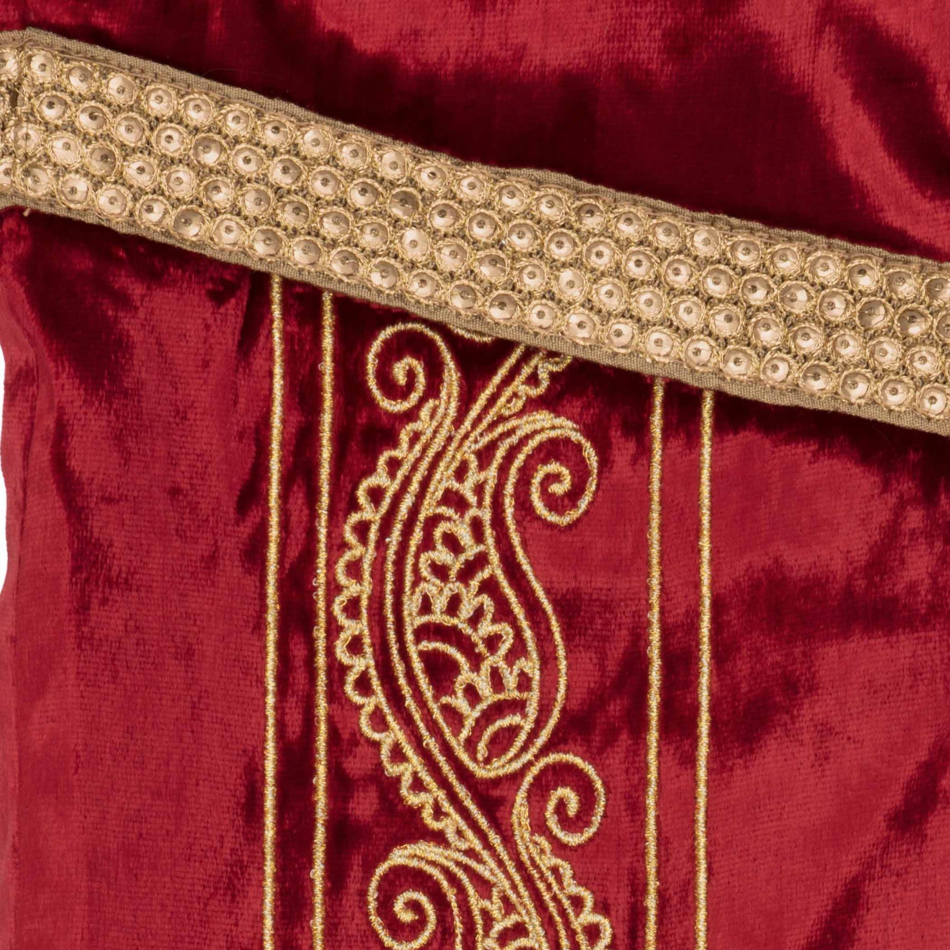 This holiday season, get into the spirit with this elegant Yule Stocking in country red and antique gold. This 11x20" Christmas stocking hangs easily from a fabric loop, and when you want a change of pace, simply reverse the stocking for a more simple design. Made to last, the Yule stocking is the perfect farmhouse decor item for your holiday hearth. Includes: 1 x Stocking; Care Instructions: Hand Wash, Lay Flat to Dry Material: 100% Viscose Face, Polyester Taffeta Lining The Yule Stocking's rich color palette and classic holiday pattern provide a festive touch to your home décor this season. It's the perfect way to add a luxurious, yet homey feel to your festivities. Get ready to celebrate in style this year.