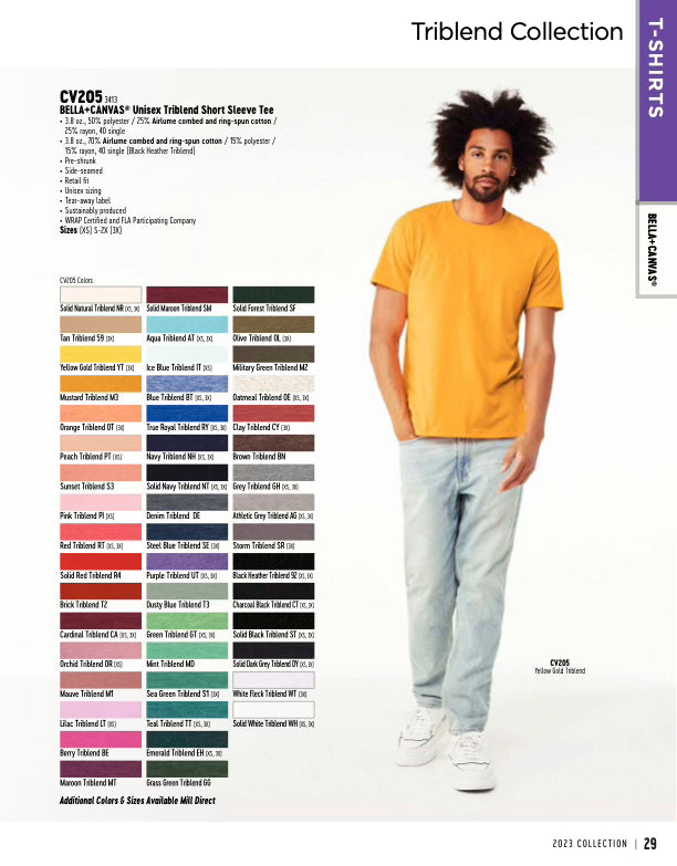 Introducing the Bella Canvas Shirt Tri Blend, a classic fit unisex shirt that is sustainably produced using a mix of Airlume combed and ring-spun cotton, polyester, and rayon. This shirt is perfect for sublimation and offers a lightweight feel for superior comfort and durability.
