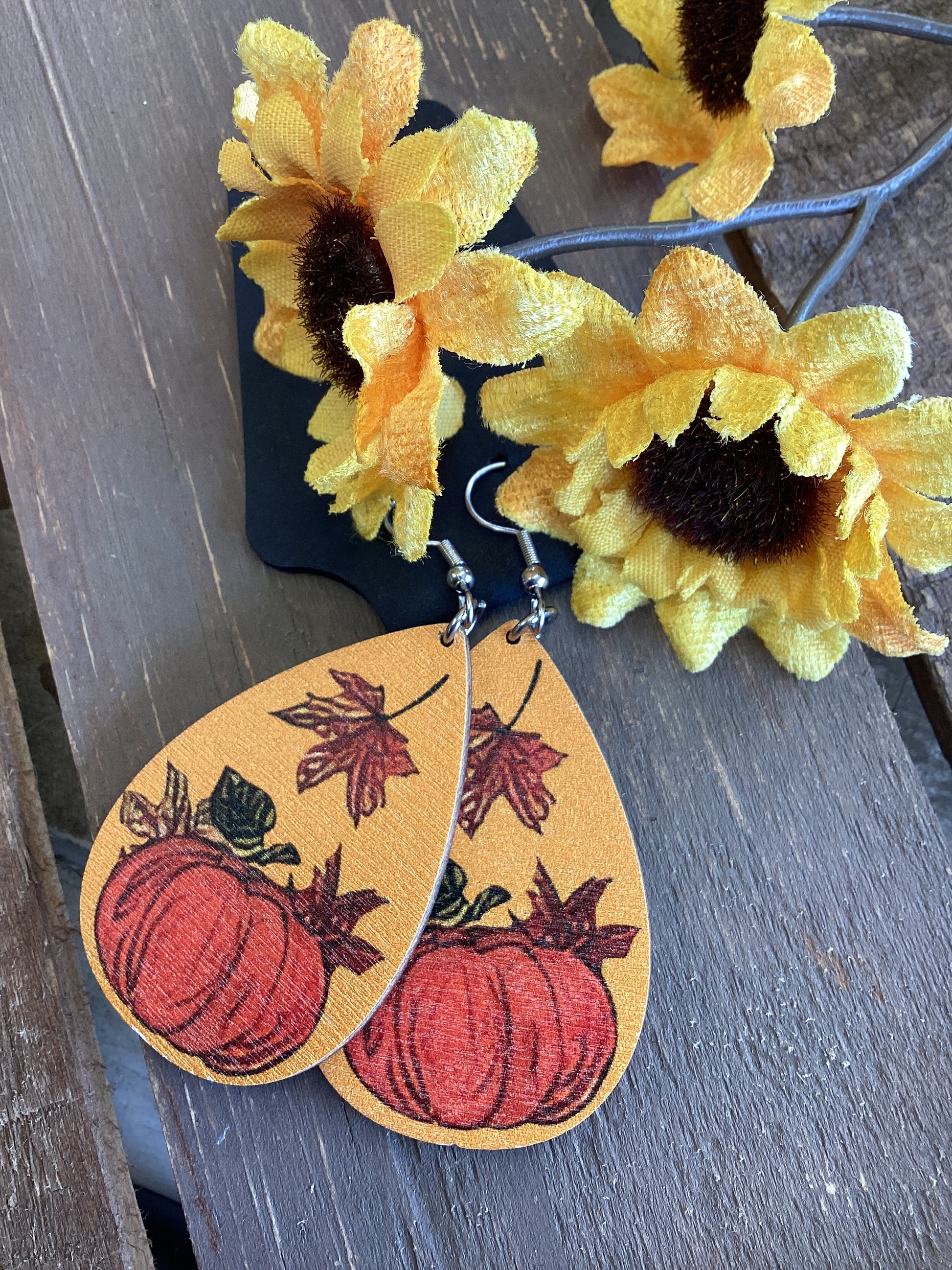 Fall Earrings - Teardrop Pumpkin and Leaves