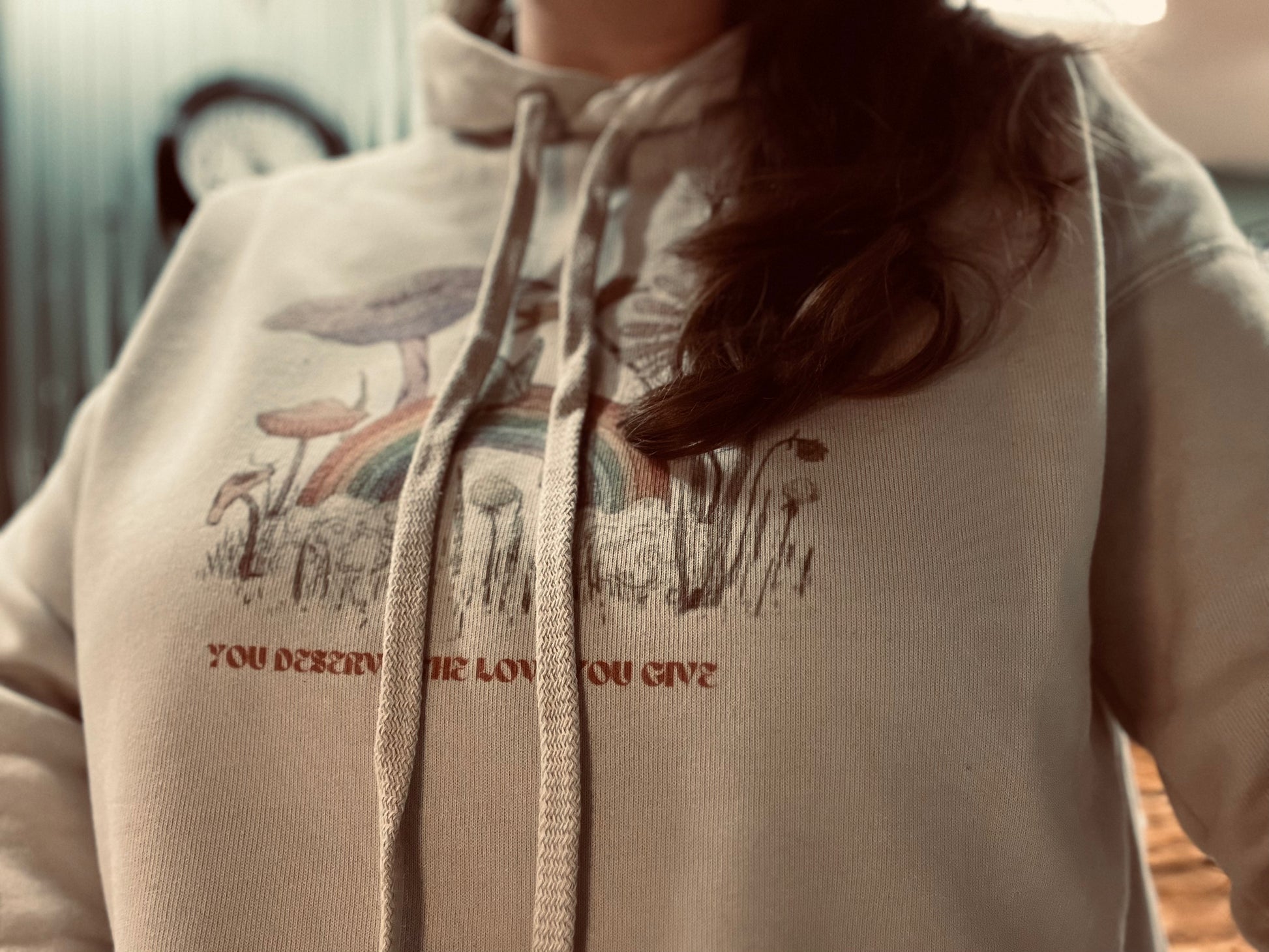 GRAPHIC CROP HOODED SWEATSHIRT - YOU DESERVE THE LOVE YOU GIVE
