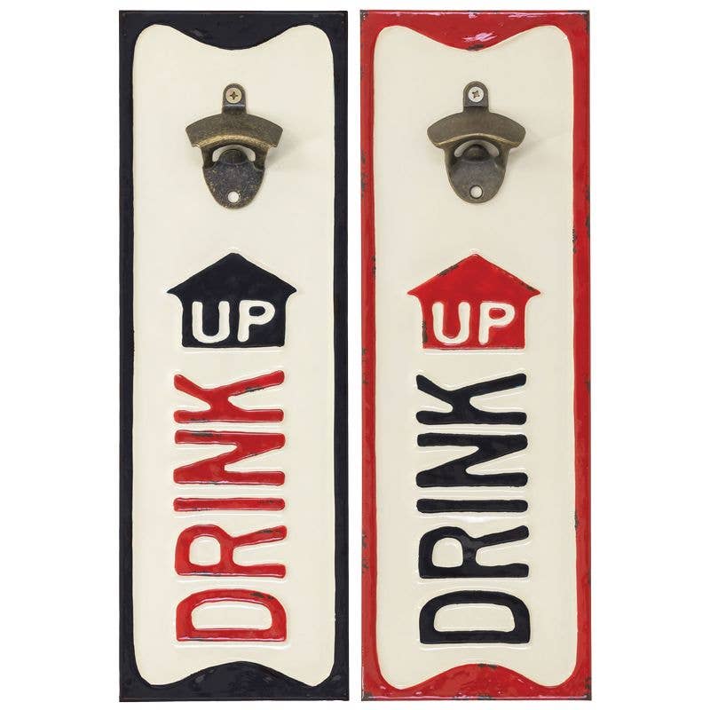 The "Drink Up" bottle opener sign is the perfect accessory for any party animal or beer enthusiast. With its playful and humorous design, this sign will remind you to always stay hydrated (in a fun way, of course) while also being a convenient tool for opening up your favorite beverages.