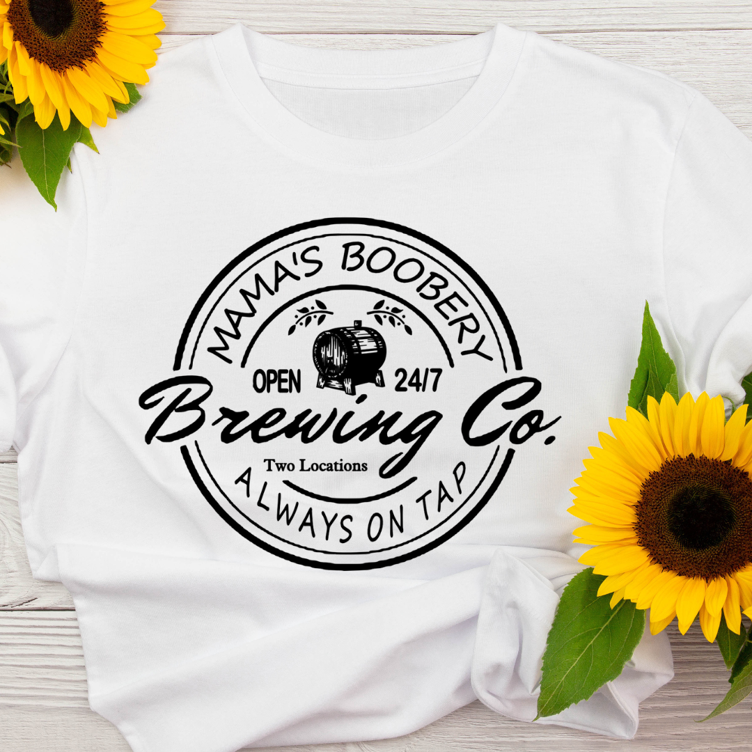 Turn your tatas into a "taptastic" treat with Mama's Boobery T-Shirt! Lightweight and comfortable for 24/7 wear, this top makes breastfeeding a breeze. No more fumbling and fussing, just an always-on-tap boobery supply!