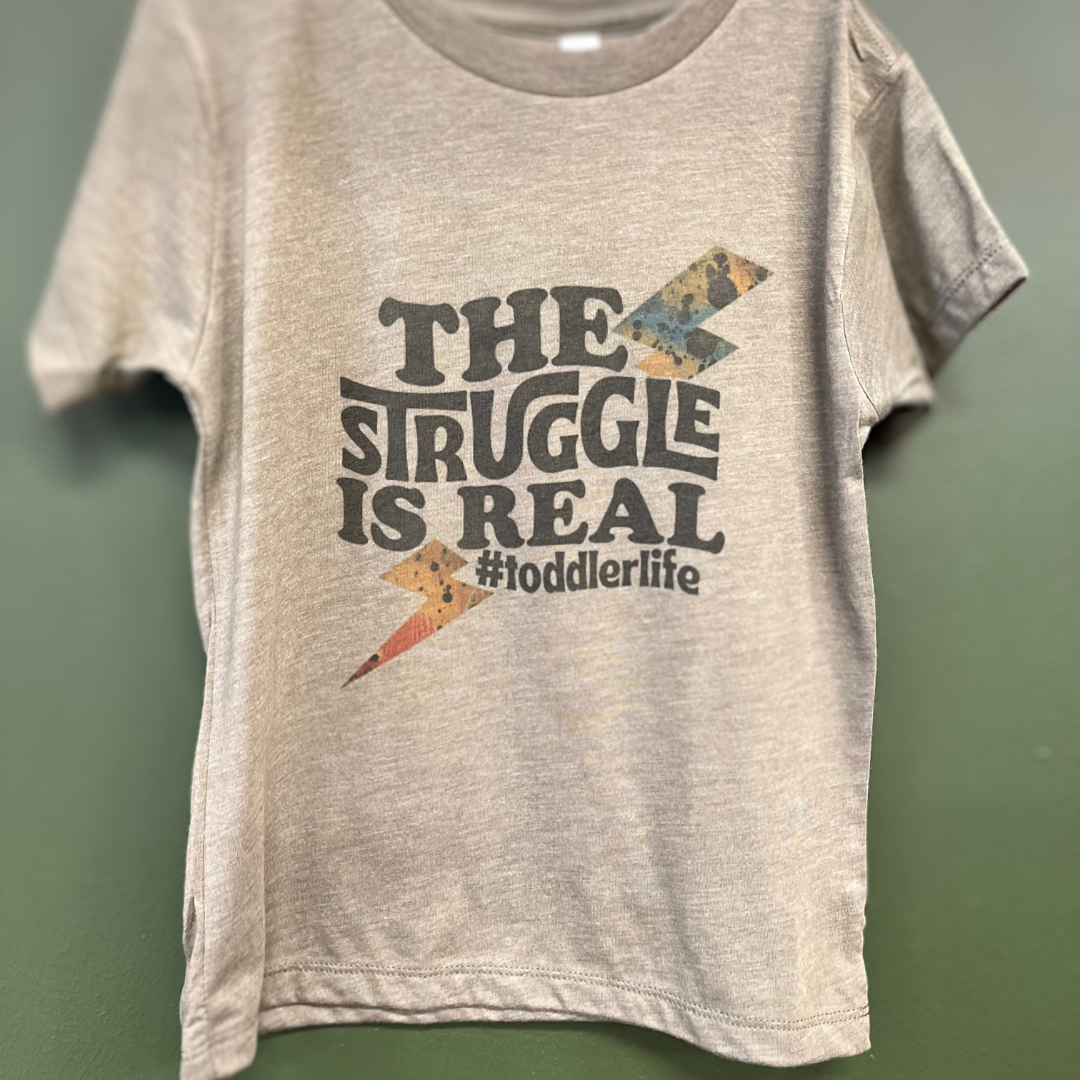 The Struggle is Real toddler life T-Shirt is the perfect addition to any little one's wardrobe. Made with a soft tri-blend fabric, this tee is comfortable and breathable for year-round wear. With a fun and relatable message, it's sure to bring a smile to everyone's face. Your toddler will love wearing it while navigating the ups and downs of daily life. The T-Shirt features a modern fit and a playful illustration that makes wearing it an adventure. With bright colors and a durable construction, it's sure to last through countless childhood memories.